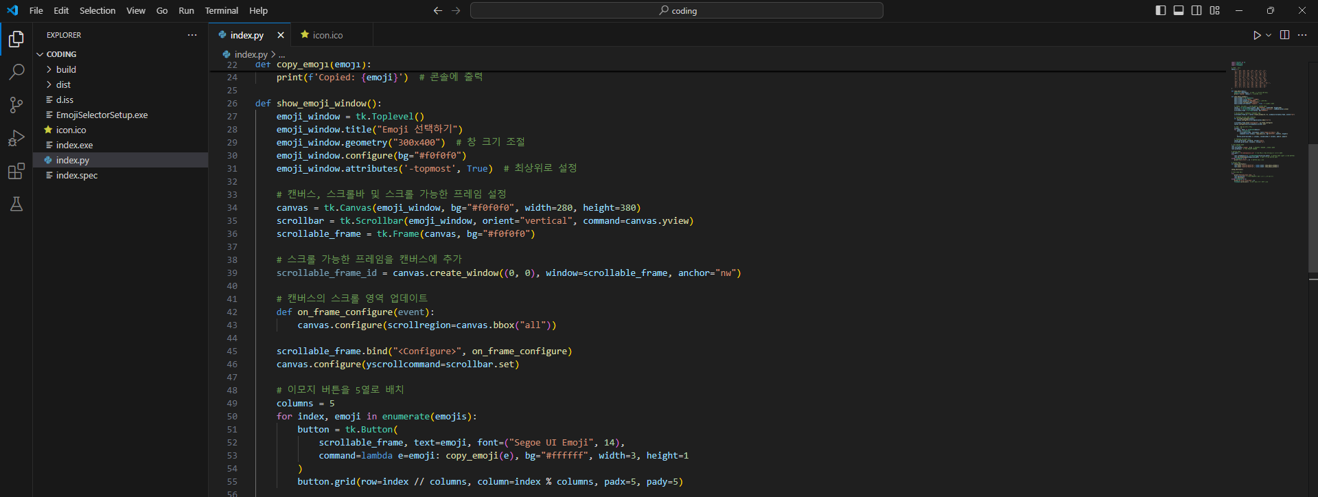 이렇게 이모지를 선택할수 있는 창이 나옵니다.