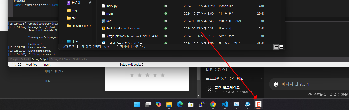 아이콘을 눌러 프로그램을 실행하면 작업표시줄에 E 모양으로 아이콘이 하나 생성됩니다.
