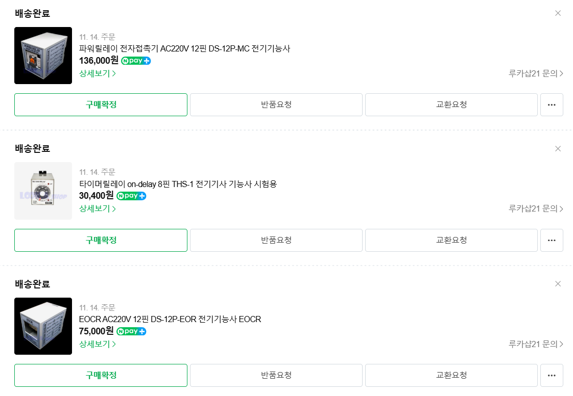 릴레이, 타이머릴레이, EOCR을 구매했습니다.