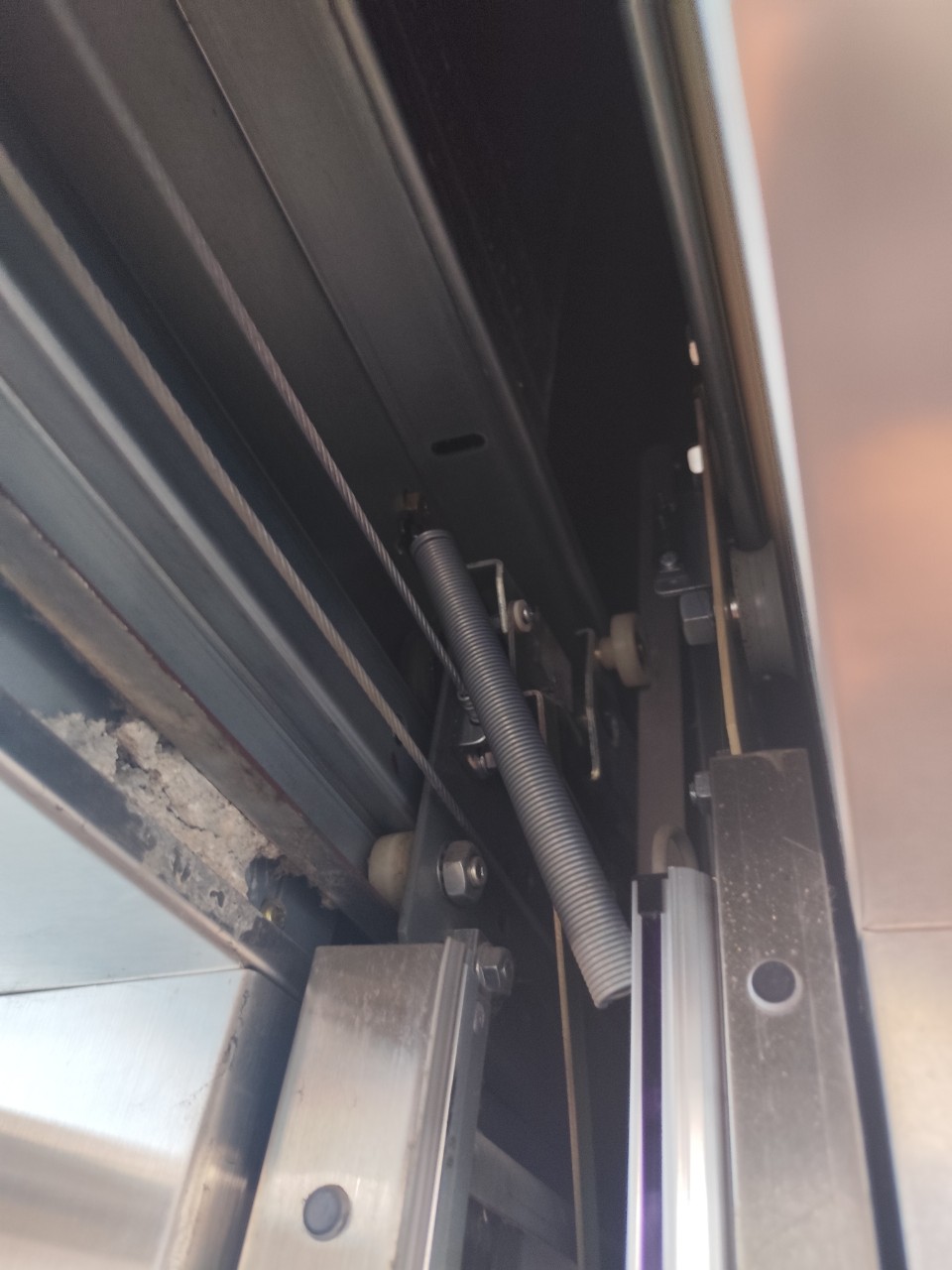 엘레베이터를 1층 절반정도에 놓은다음 1층으로 내려가 홀도어를 열어주고 카안으로 들어가서 끊어진 연동스프링을