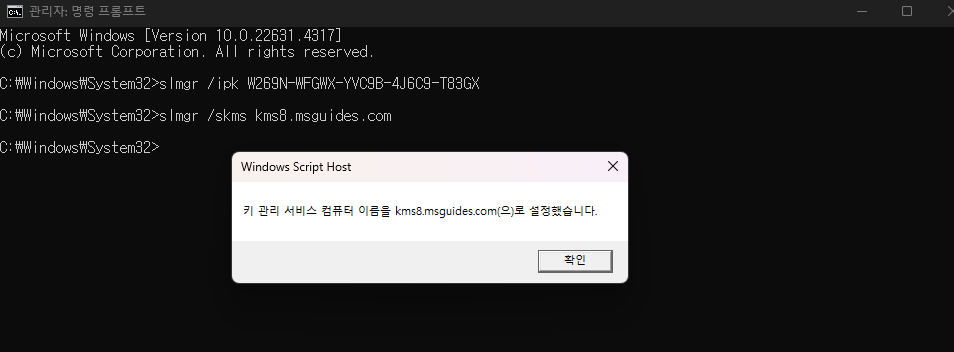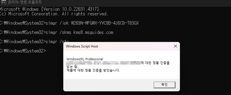CMD로 정품 인증을 할 수 있는 이유는 slmgr.vbs라는 Windows의 기본 스크립트 덕분입니다.