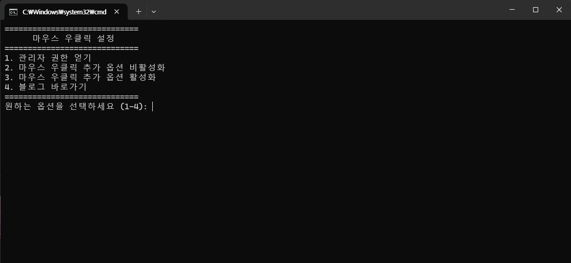 스크립트를 실행하면 상단 사진처럼 선택할수있는 메뉴가 나옵니다.