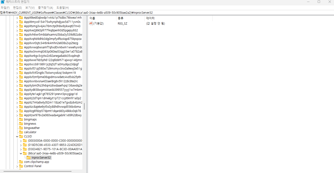 이후 InprocServer32 키를 만들어준다음에 재부팅을 진행한다.