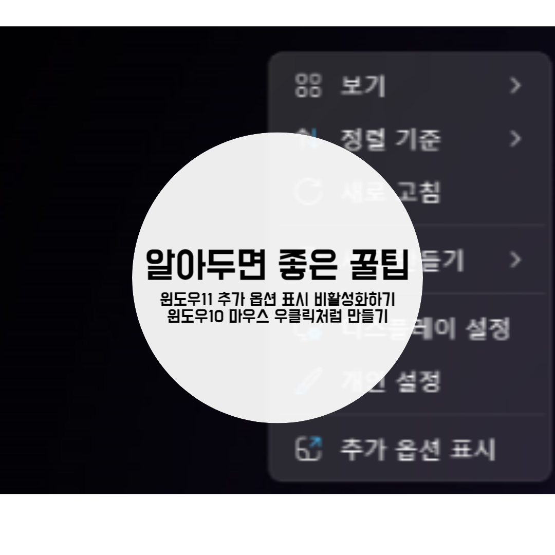 이번 게시글에서는 윈도우10 마우스 우클릭했을때 처럼 윈도우11에서도 마우스 우클릭을 통해 바로 프로그램 기능을 이용할수있도록 하는 방법에 대해서 알아보려고 한다.