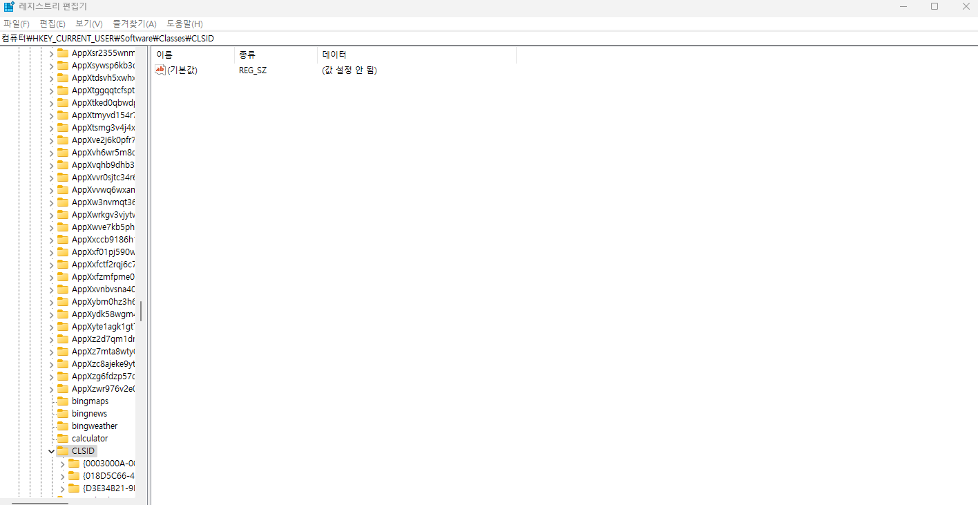 HKEY_CURRENT_USER\SOFTWARE\CLASSES\CLSID 경로를 들어갔다면 마우스 우클릭을 한다음