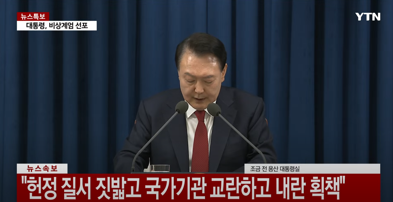 세상에 1시30분에 화장실 가려고 일어난 김에 뉴스를 틀어보니 뉴스 화면이 온통 빨간색에다가 뉴스특보에 대통령, 비상계엄 선포 라고 나온다.