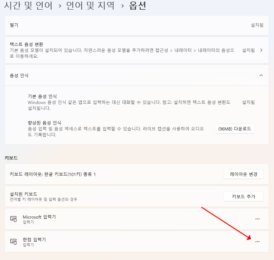 누른 다음 추가 키보드 설정을 눌러줍니다.