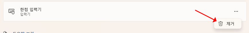 사진 순서대로 클릭 한 다음에 한컴 입력기를 삭제하면 완료!