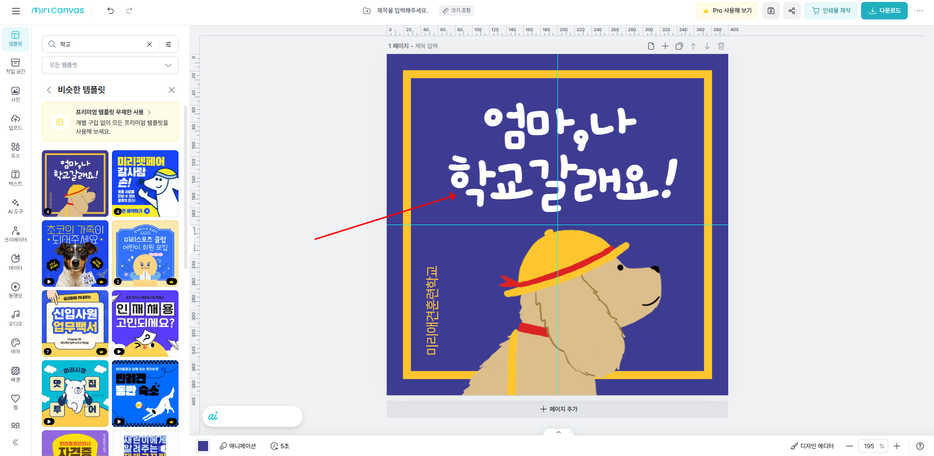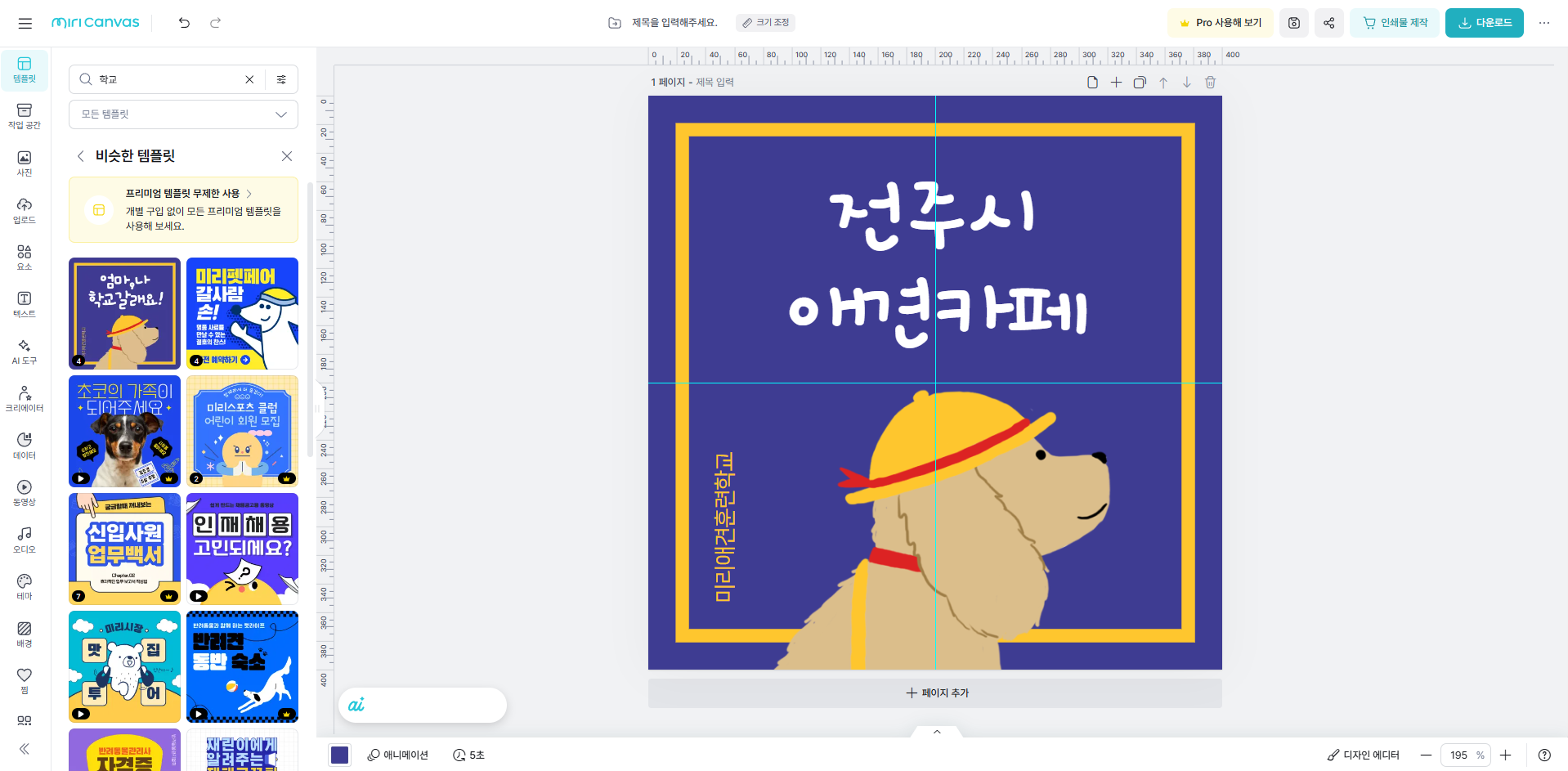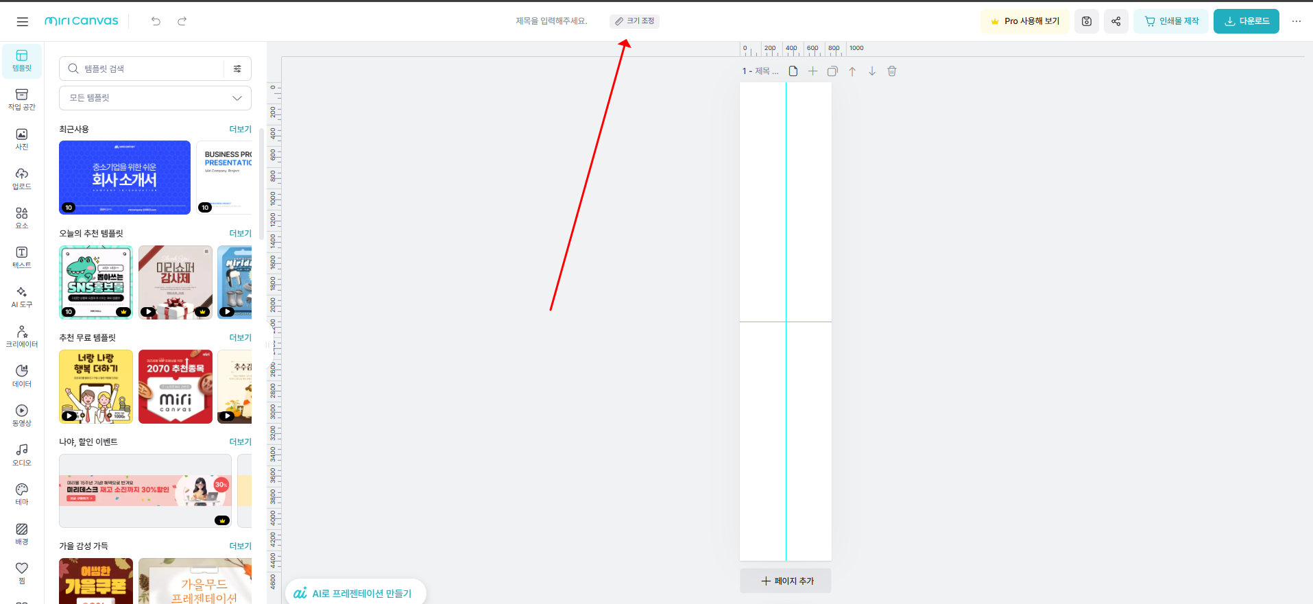 이후 디자인 만들기를 눌러 디자인 페이지로 이동하면 아래와 같이 나오게 됩니다.