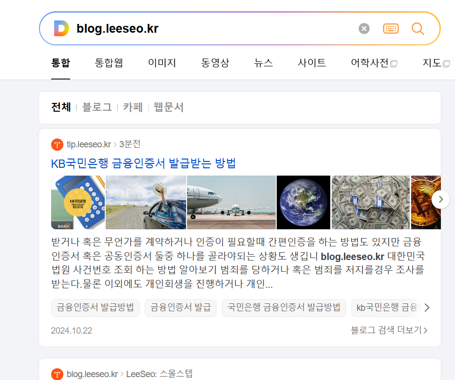 블로그가 최적화 되면 이렇게 게시글이 출력된다.
