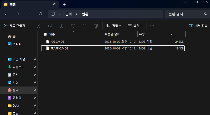 | MDB 파일 SQLITE로 변환하기 (0) | 2025.07.06 |