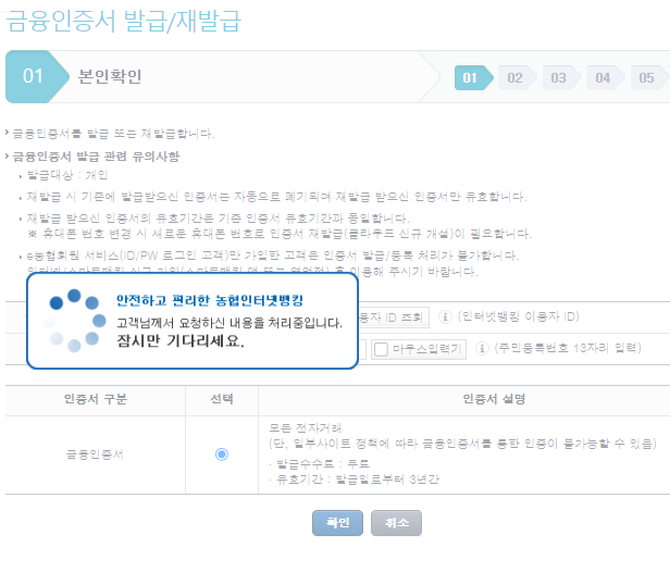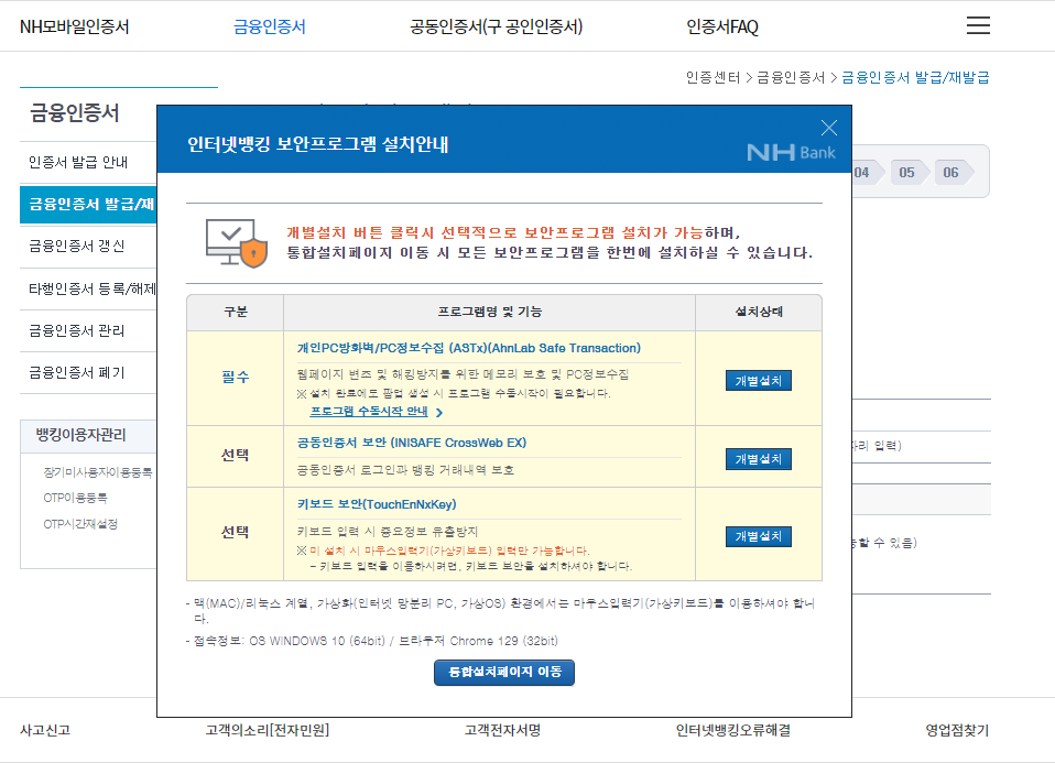 농협은행에서 금융인증서를 발급받기 위해서는 필수 보안 프로그램을 설치해야 합니다.