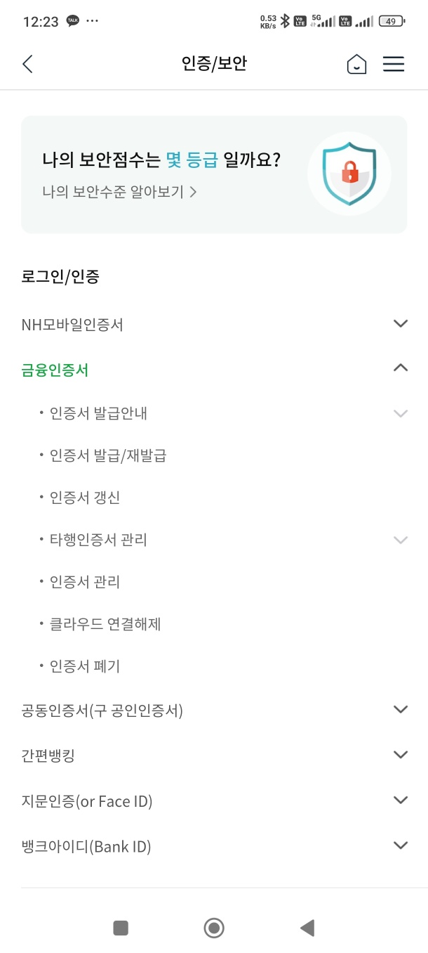 해당 페이지 에서 금융인증서를 클릭해줍니다.