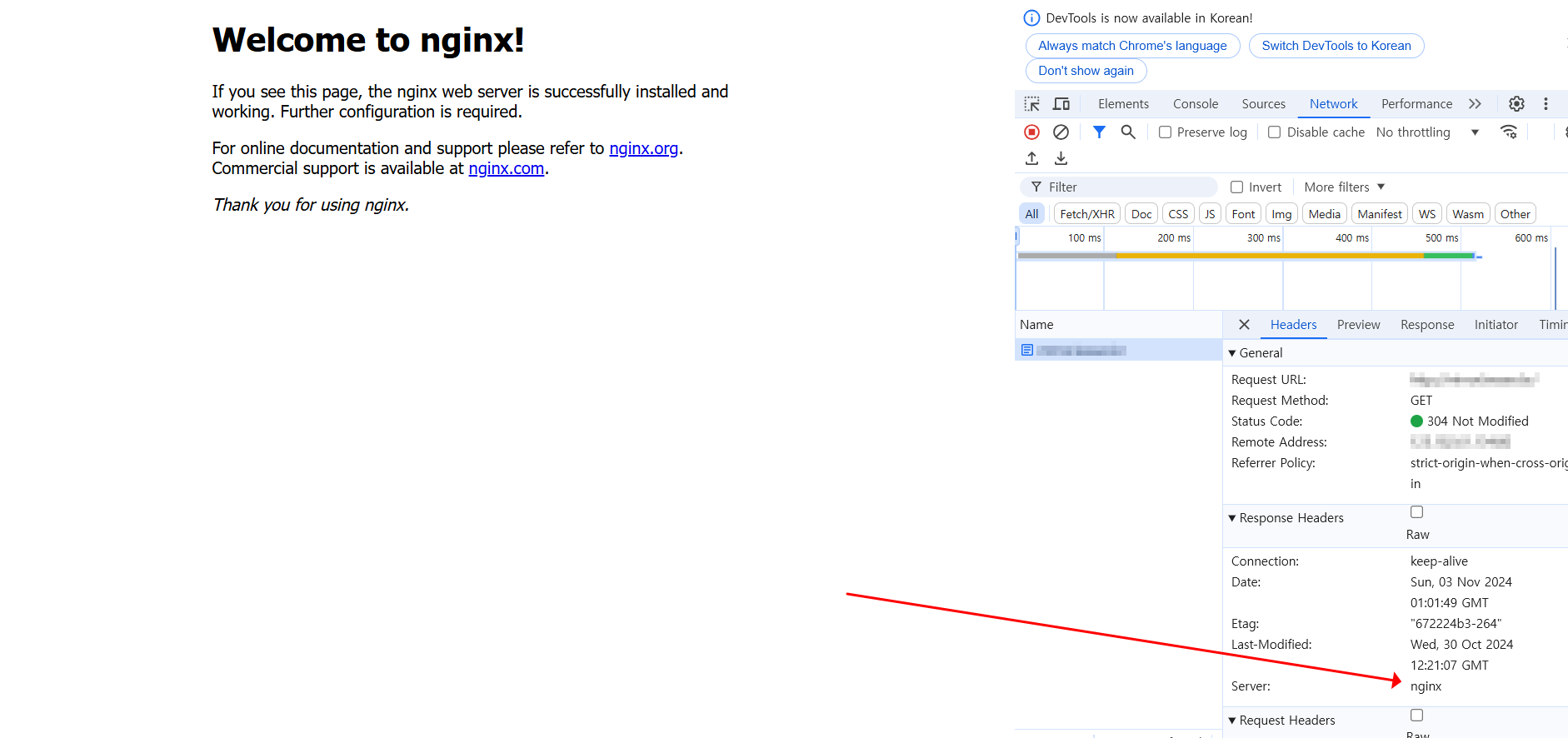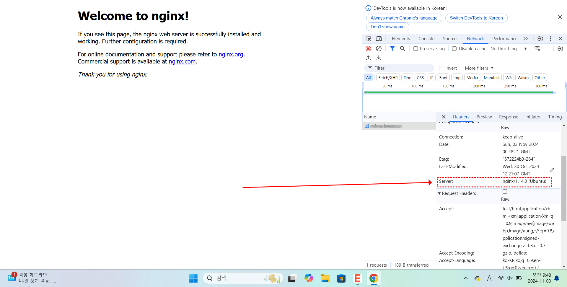 nginx를 설치하고 보니 서버가 노출되면서 운영체제, 버전, 소프트웨어명이 노출됩니다.