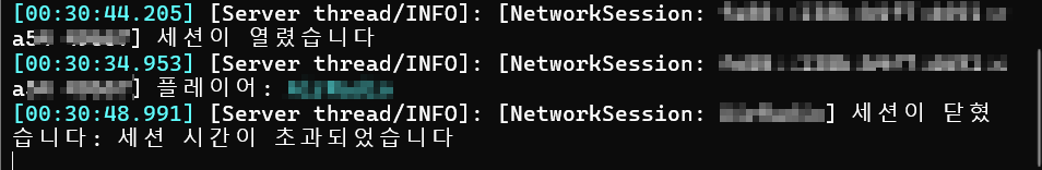 서버에 접속하면 콘솔창에서 해당 유저에 대한 정보가 나온다.